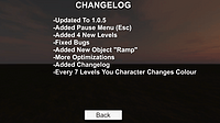 -Updated To 1.0.5 -Added Pause Menu (Esc) -Added 4 New Levels -Fixed Bugs -Added New Object "Ramp" -More Optimizations -Added Changelog -Every 7 Levels You Character Changes Colour...
